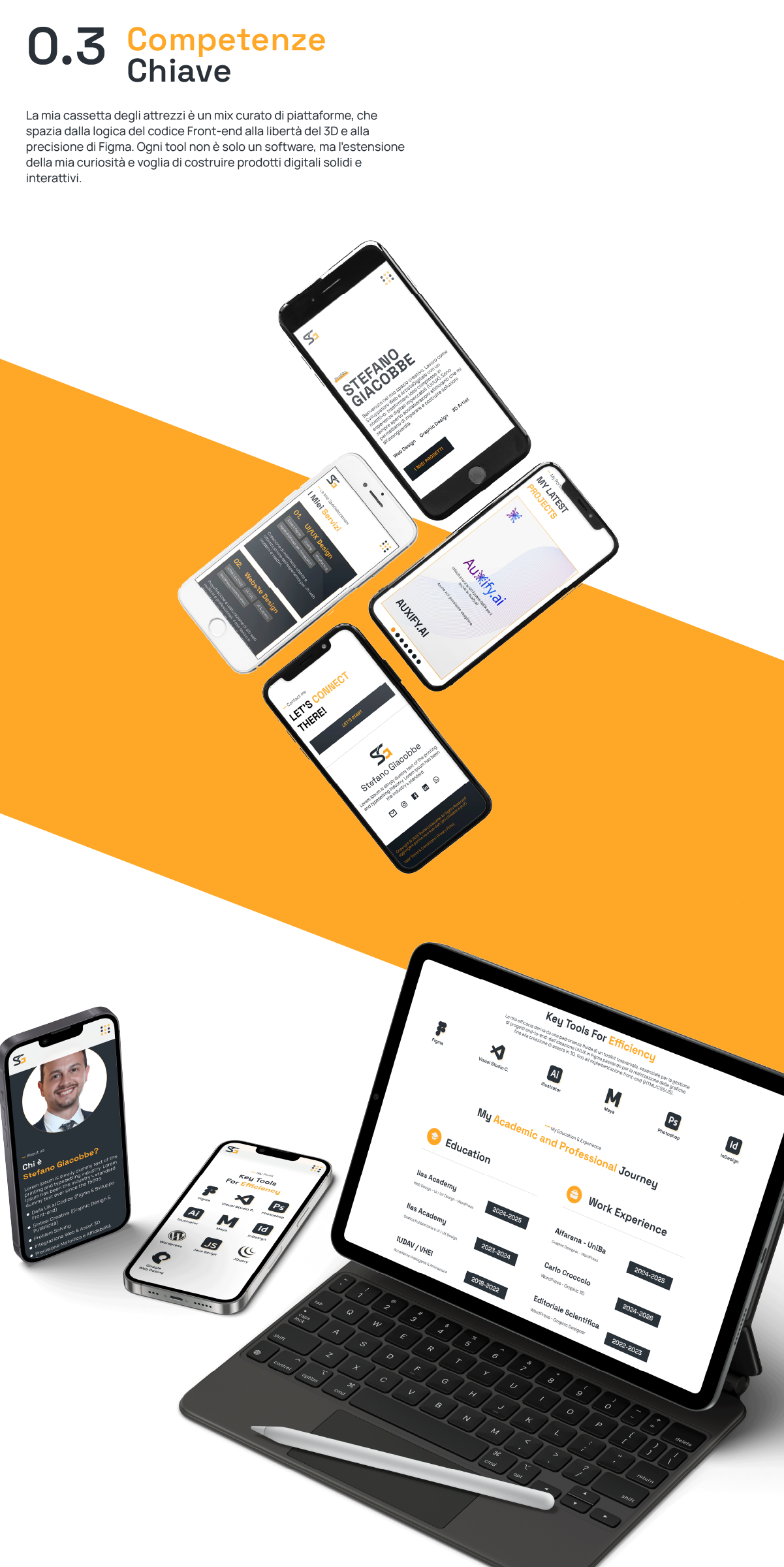 Il portfolio è pensato come uno spazio dinamico dove i progetti non vengono solo mostrati, ma raccontati attraverso interazioni, animazioni e un’estetica curata nei dettagli. Ogni sezione prende vita grazie a griglie responsive, transizioni fluide e un design mobile-first che valorizza l’esperienza utente. È più di una raccolta di lavori: è una narrazione visiva che riflette il mio approccio creativo e la mia attenzione all’equilibrio tra funzionalità ed emozione.