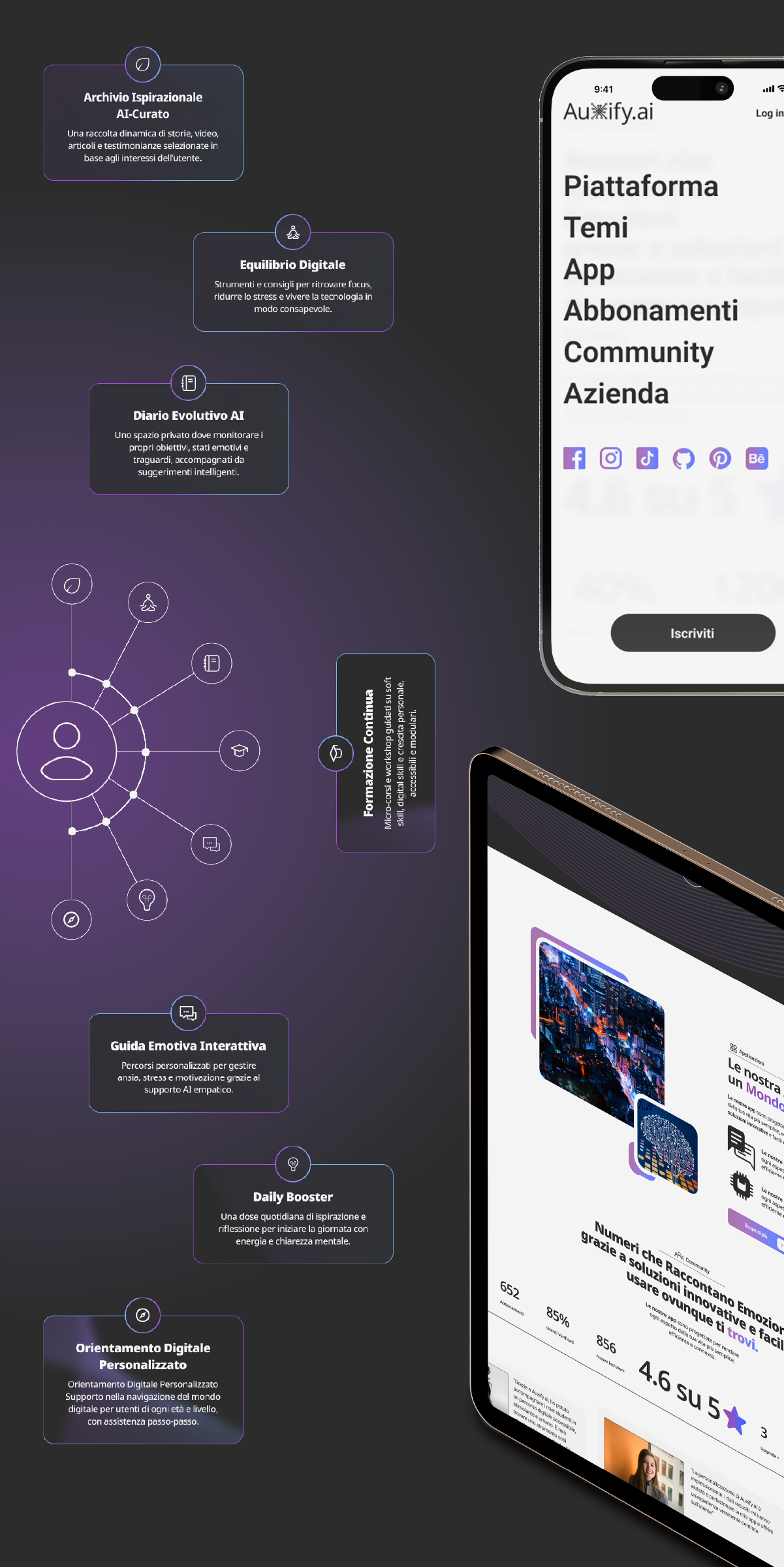 Il progetto nasce da un concept chiaro: creare un’AI che metta al centro l’utente e migliori la qualità della vita. Dalla fase di ideazione fino allo sviluppo tecnico, ogni passaggio è stato guidato da principi di etica, inclusione e accessibilità, trasformando la visione in una piattaforma digitale solida e funzionale.