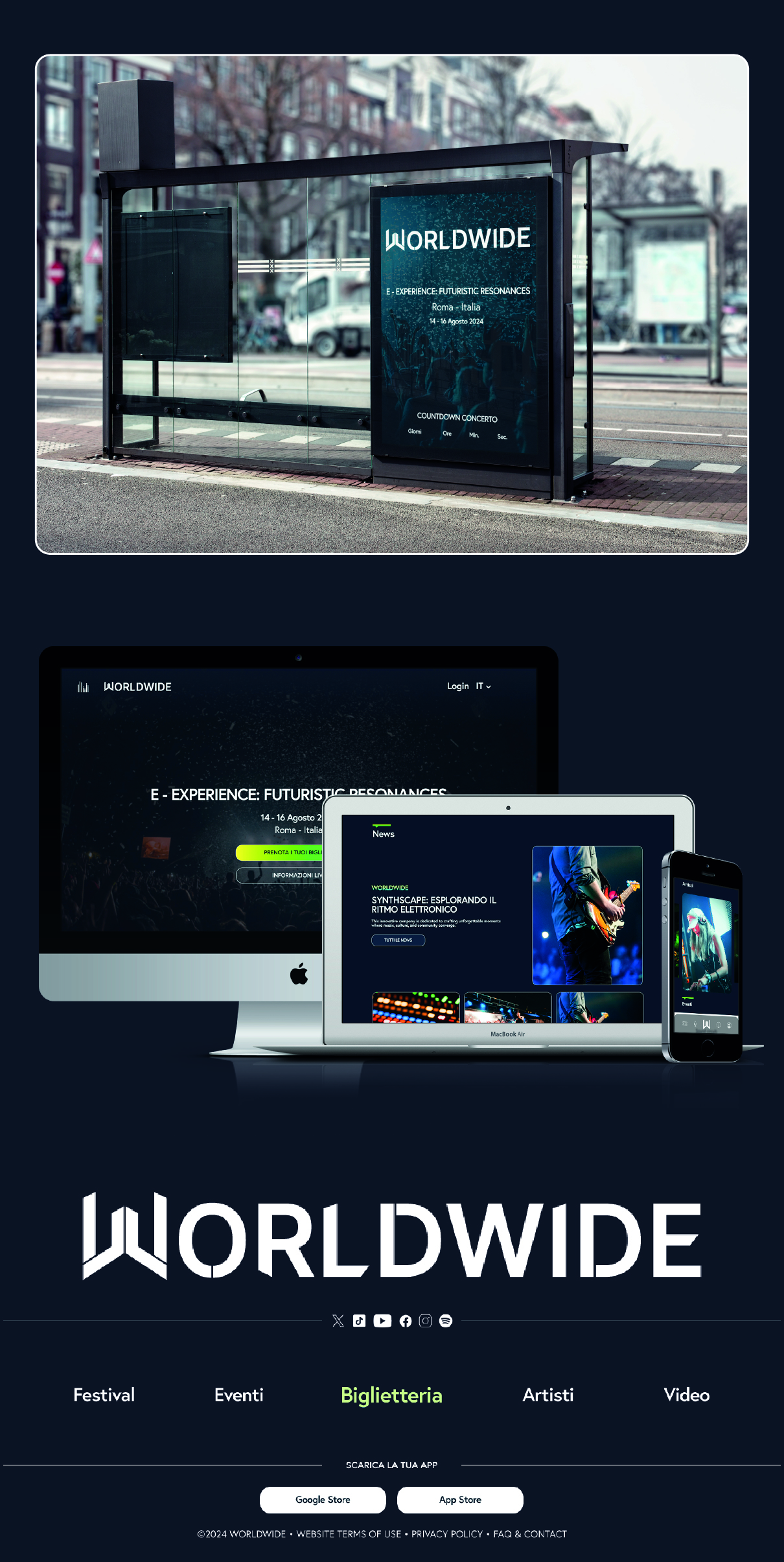 Worldwide nasce dall’idea di creare un festival musicale capace di unire culture e sonorità da tutto il mondo. Dal concept iniziale fino alla realizzazione del progetto digitale, ogni fase è stata guidata dalla volontà di rendere l’esperienza accessibile, immersiva e riconoscibile, con un design che valorizza l’identità internazionale dell’evento.